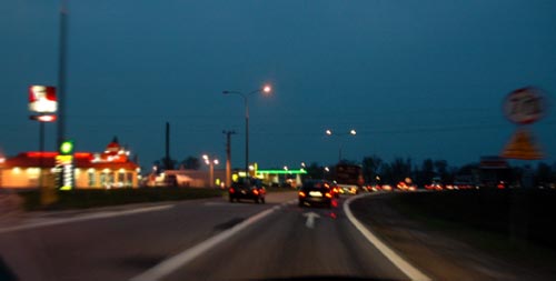 Dalej droga jest słaba, wiele świateł, ciasno, korki - niefajnie.