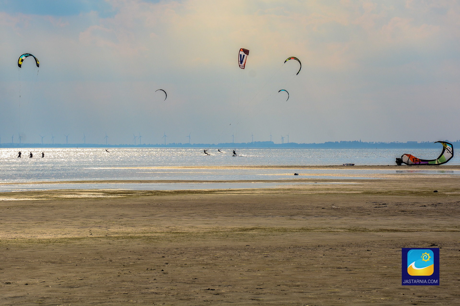 Kitesurferzy na zatoce.